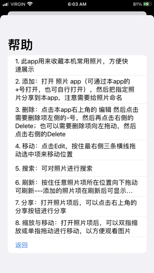 1. 此app用来收藏本机常用照片(如证件、疫苗记录等),方便快速展示