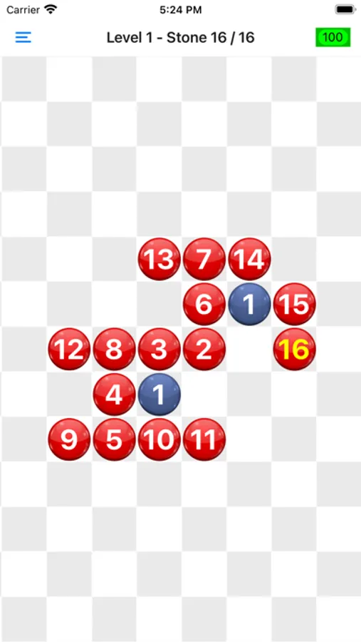 The objective is simple: Place a given series of ordered, red stones onto an infinite chessboard.