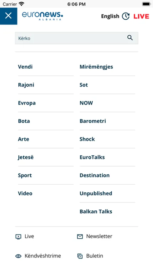 Euronews Albania transmeton në gjuhën shqipe dhe mbulon ngjarjet e interesat e shqiptarëve, në rajon e mbarë diasporën. Euronews Albania ndan të njëjtët vlera, standarde profesionale dhe filozofi me platformën mediatike ndërkombëtare Euronews Group.Me një investim kurajoz dhe të pazakontë në rajon, si në teknologji ashtu edhe në burime njerëzore, Euronews Albania, synon të jetë pararojë e një revolucioni mediatik, i shumëkërkuar nga qytetarët dhe investitorët.