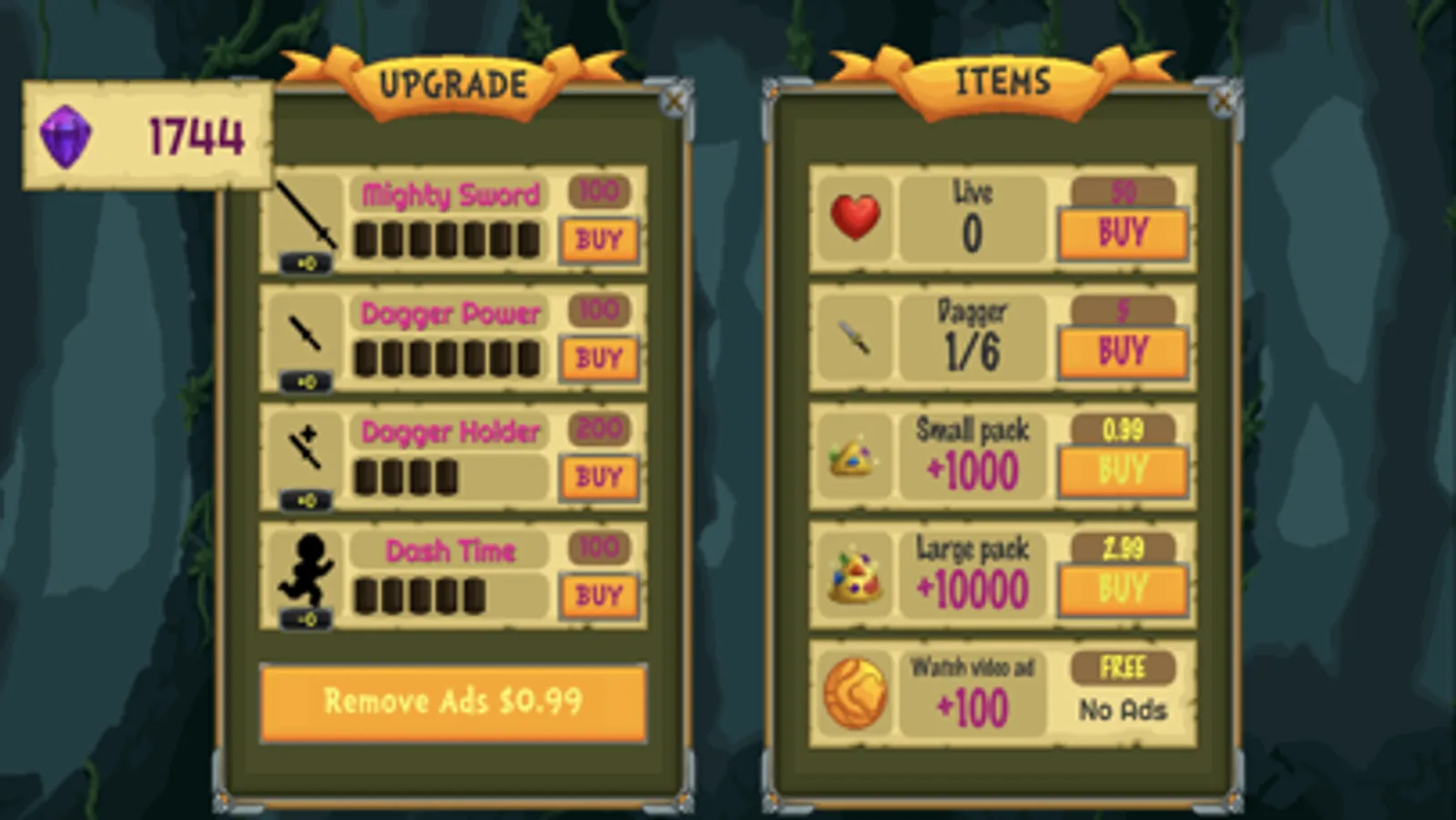 In your hands you have everything you need: jump and run, higher and further. Use all your weapons, both your great sword and your accurate throwing daggers. And remember, you can improve your abilities and your weapons by collecting all the gems you find along the way.