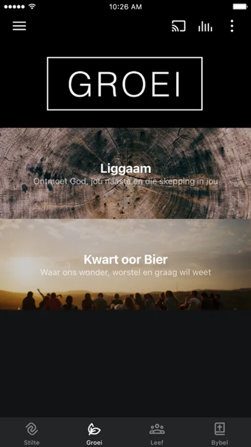 The Leef app is a space where you can practice your faith-rhythms. It's an Afrikaans app that will facilitate a diversity of spiritual practices to help you grow in your faith through prayers, meditations and reflections. Here we learn about ourselves, God, people and the earth. This app is created by Durbanville Gemeente.