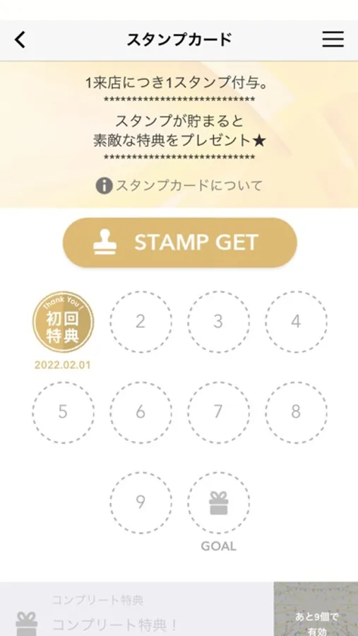 ・ご来店ごとにたまるスタンプカード。