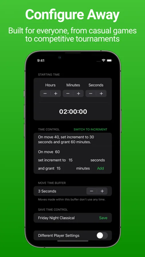 - Run everything from casual games to competitive tournaments, with increment, full time control, and move clock buffer options.