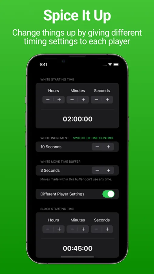 - Make things interesting with support for having different timing rules for each player - different starting times, increments, and move time delays.