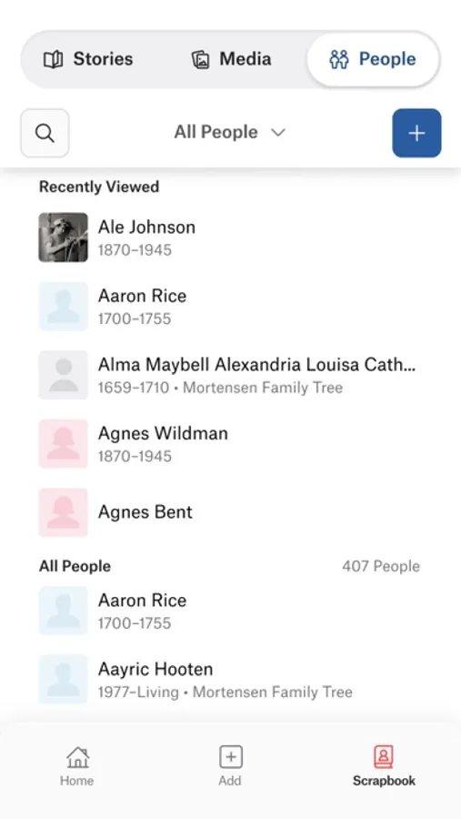 •People: View, add, and edit people associated with your tree and account. Enhance them with personal stories, photos, or other media.