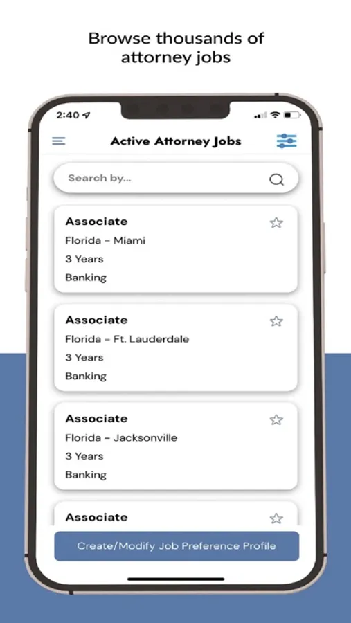 The Attorney Jobs App is a free, comprehensive app designed exclusively for attorneys to search, inquire and apply for lateral opportunities nationwide. Easily browse thousands of open positions, identify quality opportunities, and submit your resume - all in one place.