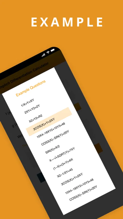 2. Examples to give users an idea of implicit differentiation questions and their solutions.