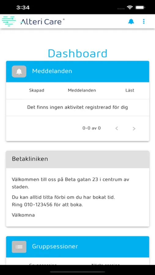 Detta är Alteri Cares demo för att visa våra kunder att Alteri Cares lösning som en app.