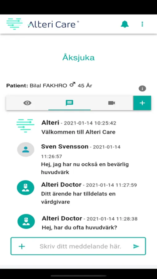 Alteri Care appen ger dig möjlighet att på ett säkert sätt kommunicera med patienter bland annat via chatt eller video.