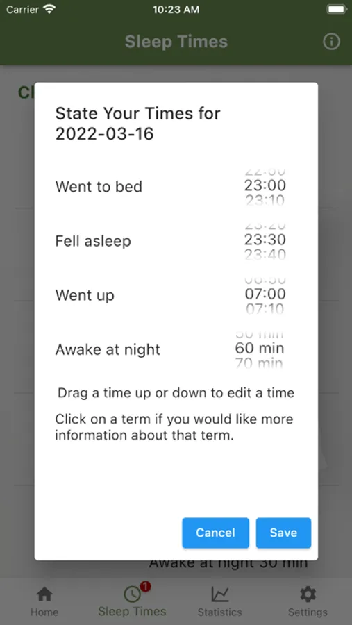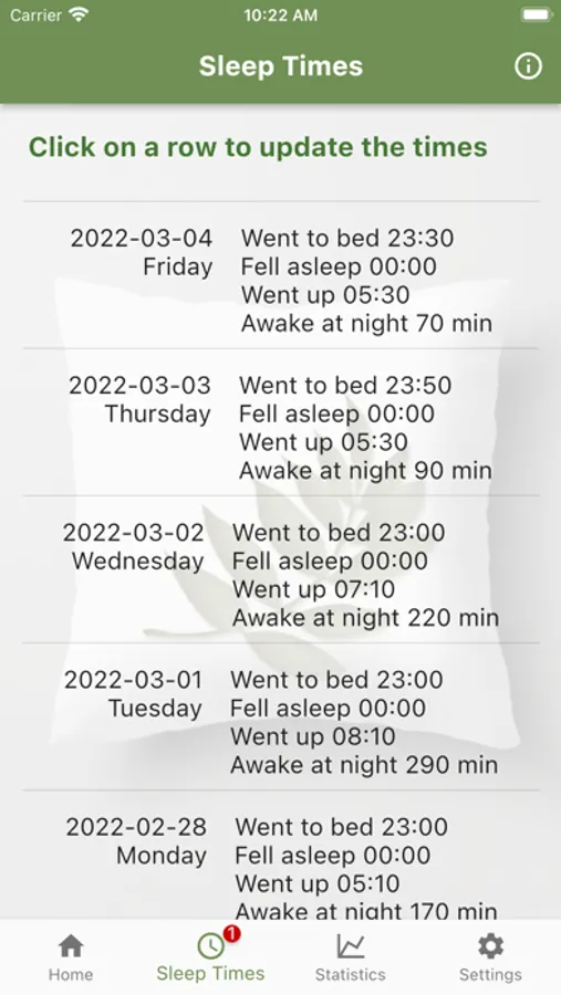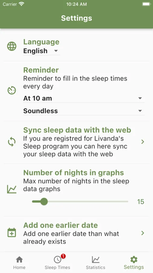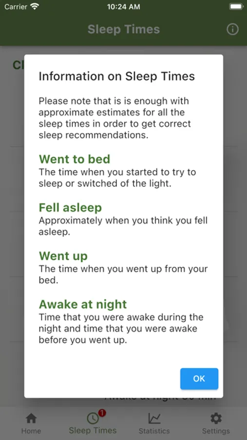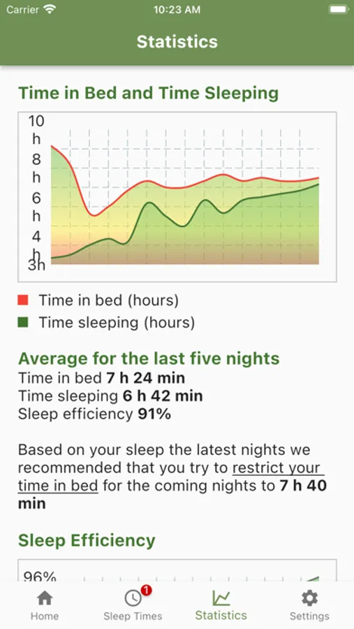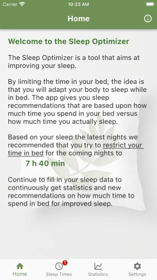 Sleep problems are very common. One way to improve sleep that has proven effective is to limit the time in bed. In this app you log your approximate time spent in bed and approximately how much of this time you have actually slept. Based on your individual sleep habits the app will then give you tailored recommendations for how you in an effective and careful way can limit the number of hours you spend in bed. This to maximize your chances to get good sleep.