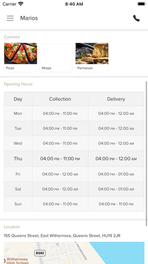 Thank you for visiting Marios in Queens Street. We hope you enjoy our online ordering app and your food.