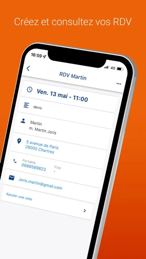 Créer vos rendez-vous dans l’application et retrouvez-les automatiquement dans le logiciel. Vous suivez ainsi facilement vos plannings, lancez vos itinéraires en un clic et retrouvez ensuite toutes les informations parfaitement intégrées dans le logiciel pour faire votre devis !