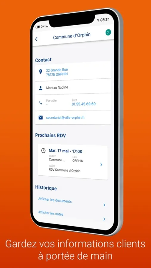 - Coordonnées du client dans le rendez-vous : téléphone mobile, fixe et adresse e-mail