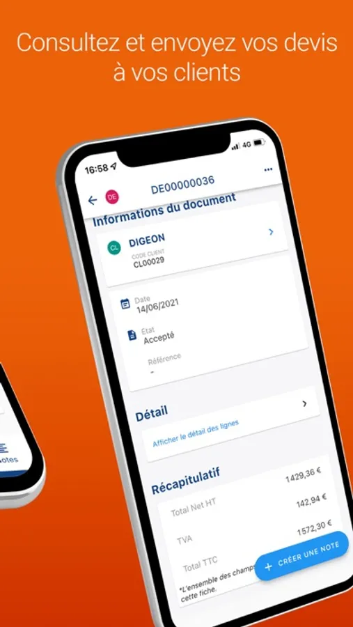 Besoin d’une information sur un client, un devis, une facture ? Consultez toutes vos données directement dans votre mobile.