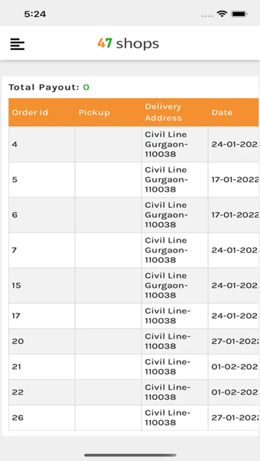 Delivery Boy Application can be downloaded by Delivery Boys of 47shops' clients. Delivery Boy App is the part of order processing and interface is self explanatory. Herein, Delivery Boys would get order details like customer name, address to deliver the orders at the right place and they can mark the order delivered upon successful delivery.