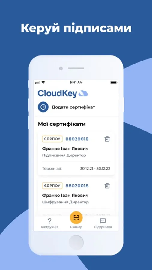 Мобільний додаток CloudKey призначений для легкої і миттєвої аутентифікації власників КЕП та зручної й простої роботи з електронними документами для представників будь-якого бізнесу.
