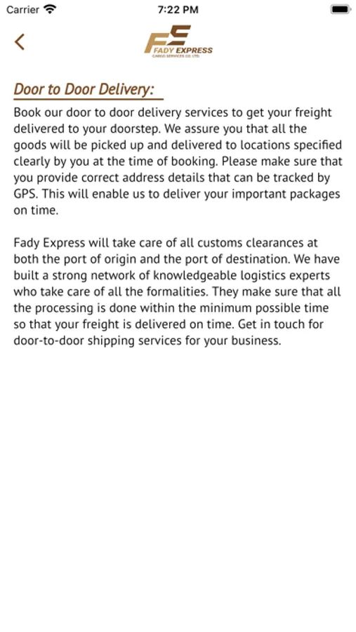 FADY EXPRESS Cargo Services provides high-quality freight management solutions and logistics services to esteemed global organizations. Our tactically positioned global network fulfills all types of customer requirements through air freight, sea freight & land transportation. End-to-end logistics solutions that transcend air, sea, and land to provide efficient support to your business.