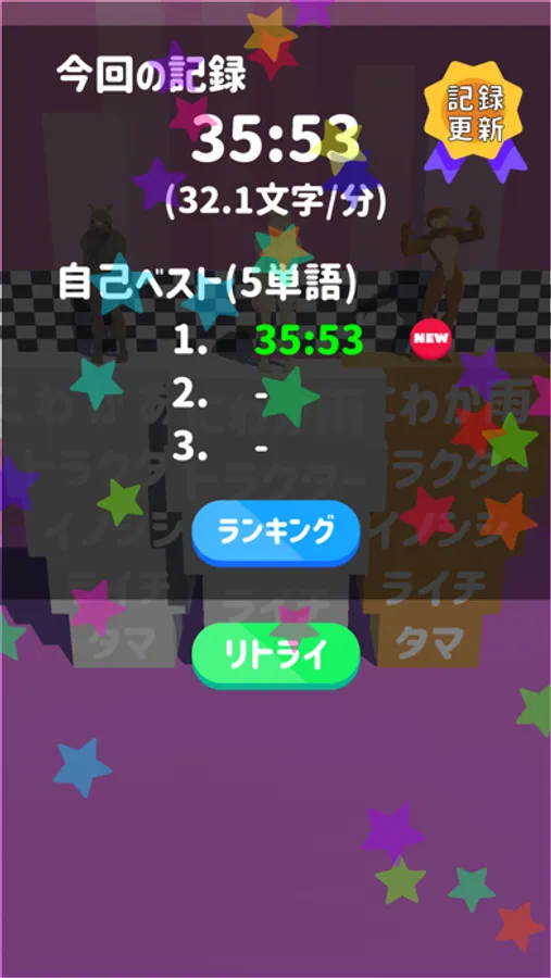 最初は5単語から、何秒で入れられるかをコンピュータと競います。