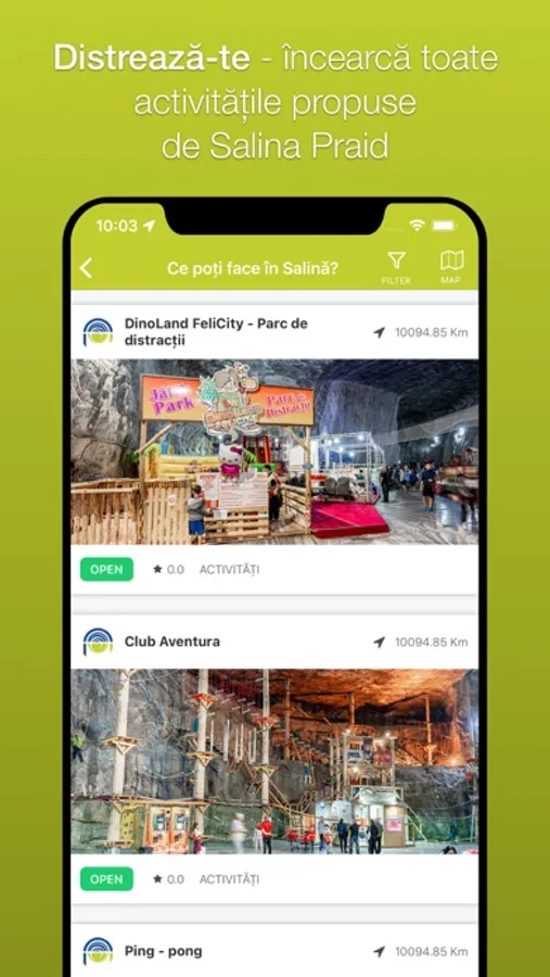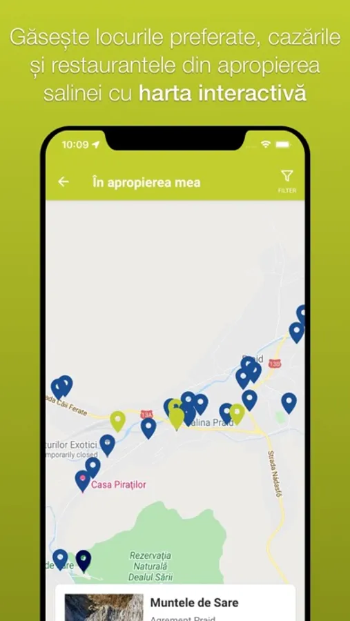 • alege pe harta „în apropierea ta” cazări, restaurante și activități recomandate de Salina Praid;