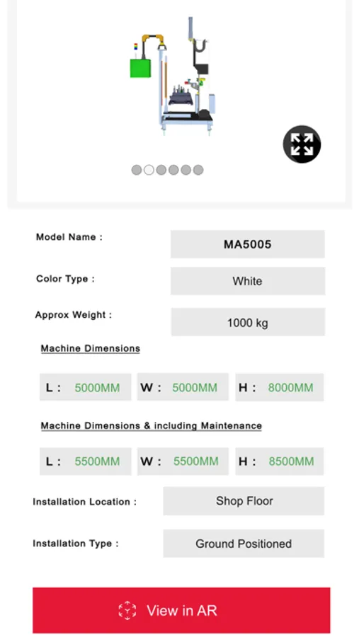 Mahindra AR app is developed with the idea of enabling Mahindra team members or Customers to try Machines on shop floor before they actually get it there. Using Mahindra AR app customer who have access of the app shall be able to view different models shared by Mahindra Admin member. Mahindra Customers can download the app from the play store and app store. Collision detection requires LiDAR scanner on the device to give satisfactory results, without that user can just see the model and maintenance area on his phone and judge if it is the right place to place the model.