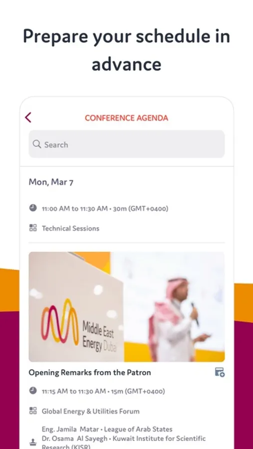 Using the Middle East Energy app, you can now scan QR codes present around the event. Scanning those QR codes makes it easier for you to discover exhibitors and the hundreds of latest energy solutions that they have on offer. You can even schedule meetings and map out where booths are during the event.