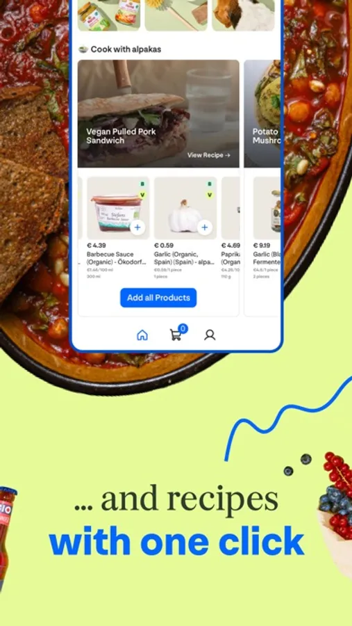 In the Alpakas shop, you can find over 1,300 products ranging from a variety of categories such as: fresh fruits, fresh vegetables, bakery goods, cheeses and alternatives, dairy goods, ready-to-eat meals, meat and alternatives, fish, spreads, cereals, frozen goods, pasta, rice, snacks, nuts and seeds, baking ingredients, herbs and spices, oils and sauces, coffee, tea, cacao, alcoholic and non-alcoholic drinks, fitness foods, health and beauty products, baby food, household goods, and pets goods.