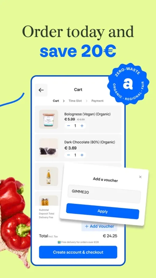 ► Sustainability: With our practical reusable packaging*, you can finally beat plastic consumption. In addition, the majority of our assortment is certified organic. We use environmentally-friendly transportation methods, such as e-bikes to deliver your orders - simply enjoy with a clear conscience.