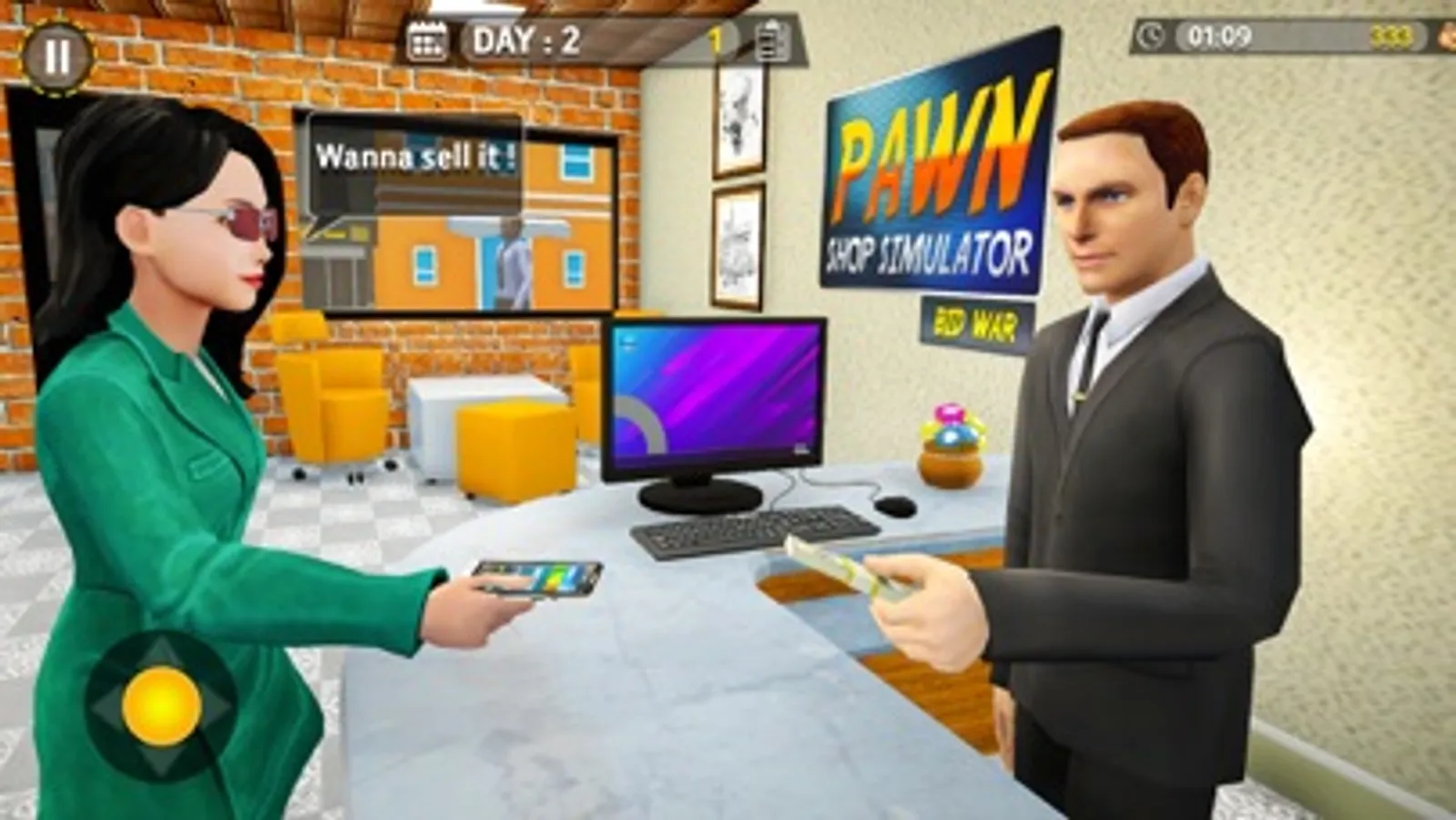Buy rare valuable items like gold rings, antiques, jewels, electronics from customers coming to the pawn shop and make profit selling. Negotiate and convince customers to make the deal.