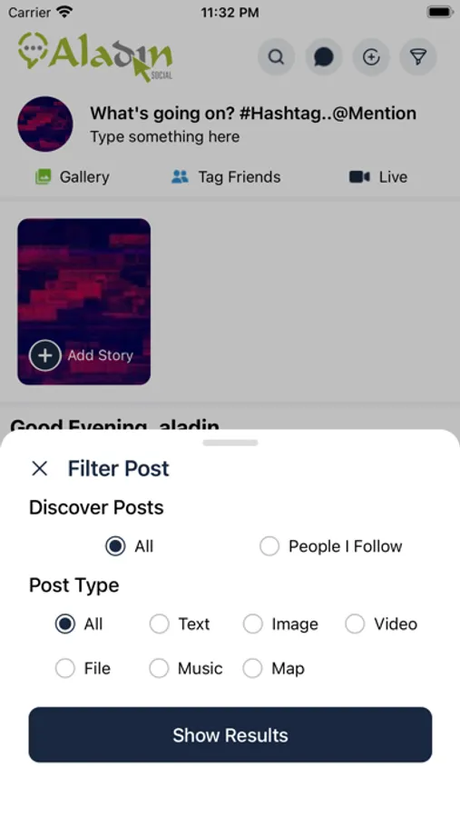 (Aladin.Social) ist ein so genanntes soziales Netzwerk, eine Art Treffpunkt im Internet, an dem man mit Freunden und Bekannten kommuniziert. Die Inhalte werden von Nutzern selbst eingestellt. Neben Statusmeldungen stellen die Mitglieder auch Fotos, Videos, Links zu Internetseiten und vieles mehr ein.