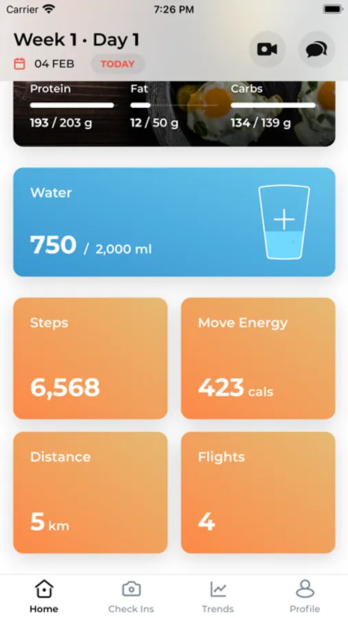 The app integrates with Apple Health to show your daily activity - distance, steps, active energy, and flights to help you better achieve your goals.