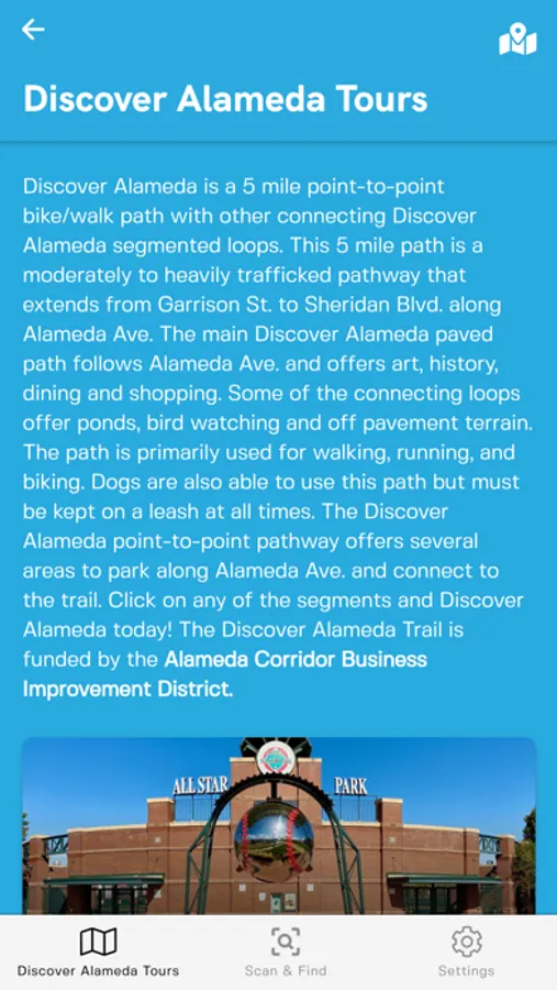 Discover Alameda is a 5 mile point-to-point bike/walk path with other connecting Discover Alameda segmented loops. This 5 mile path is a moderately to heavily trafficked pathway that extends from Garrison St. to Sheridan Blvd. along Alameda Ave. The main Discover Alameda paved path follows Alameda Ave. and offers art, history, dinning and shopping. Some of the connecting loops offer ponds, bird watching and off pavement terrain. The path is primarily used for walking, running, and biking. Dogs are also able to use this path but must be kept on a leash at all times. The Discover Alameda point-to-point pathway offers several areas to park along Alameda Ave. and connect to the trail.