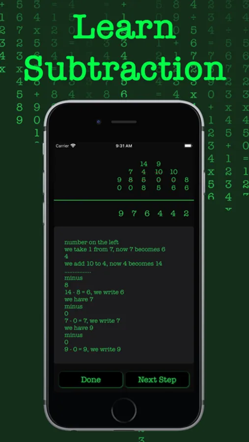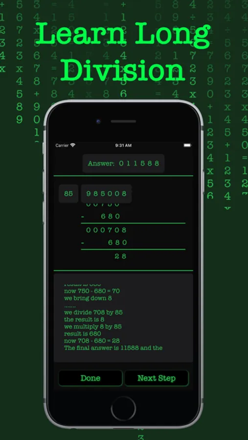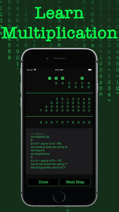 Practice math in style with this app's beautiful design. You can work on all four arithmetic operations at your desired level of difficulty, and track your progress using detailed statistics. Challenge yourself and others by competing on the leaderboard for total points. If you opt for the paid monthly subscription, you'll receive step-by-step guidance for long multiplication, addition, subtraction, and long division with remainder.