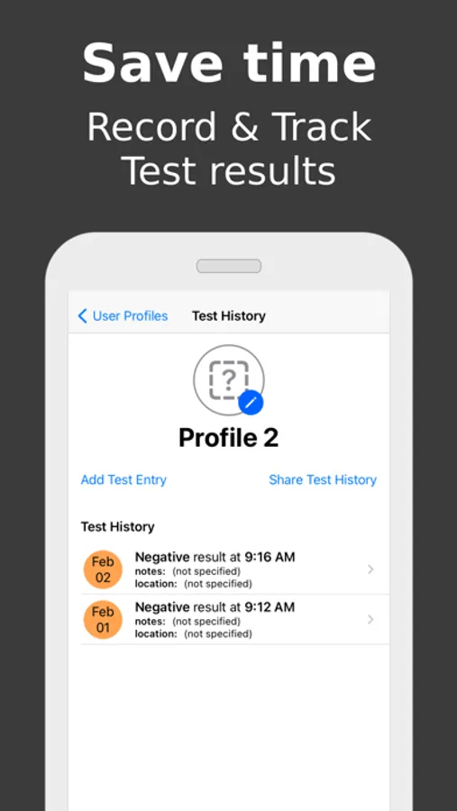 Easily record and track results for tests conducted at home or on the go. Save test results directly on your device.