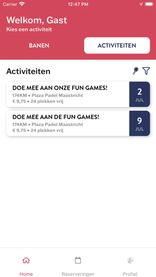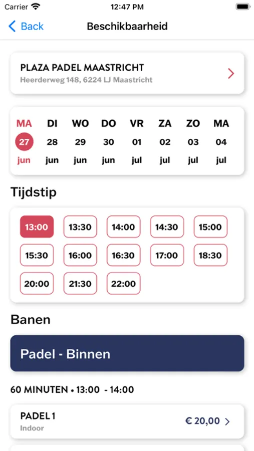 Je hoeft alleen in te loggen of registreren. Heb je al een keer via meetandplay.plazapadel.com geboekt? Log dan in met je e-mailadres en je wachtwoord en je kunt vanaf dat moment boeken vanuit de app.