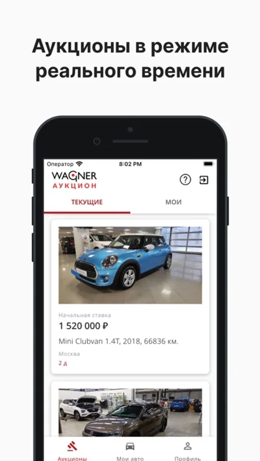 Приложение по продаже на аукционе автомобилей от компании Wagner Auto