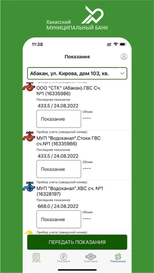 Передача показаний счетчиков