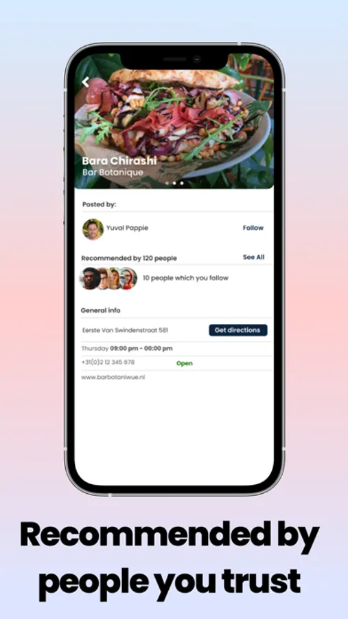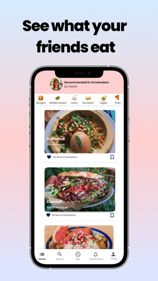 With Snibble you discover the best dishes of the city recommended by people you trust. Easily add your favorite dishes and see what your friends are eating. No more scrolling through fake or promotional reviews. Follow trustworthy people like friends, foodies and chefs. Don't know what to eat? Just open the Snibble app!