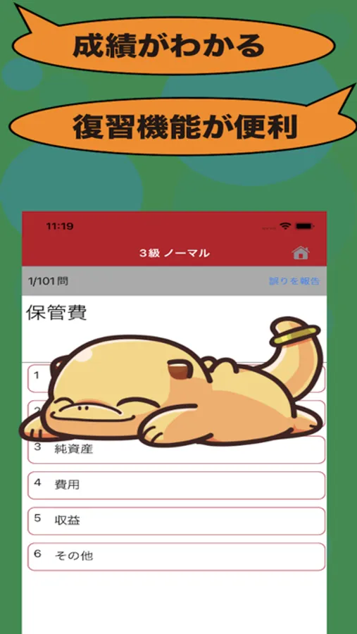 また復習機能があり、効率的に勉強できます。 たくさんの勘定科目の問題が解けます。間違えた場合は記録として残り、問題文の上部に表示されます。さらに間違えた問題だけをまとめて解ける機能を搭載。復習時はランダムでも解けます。ホームに戻ったとしてもつづきから問題を進められます。解いたあとにバッチリと要復習が下部に表示され、こちらは手動で変更可能なため、たまたま正解したものを要復習に切り替えることができます。反対に、正解したけれど不安な問題は要復習にすることで、あとからの解き直しに便利になります。図は拡大できます。問題を解かなくても次の問題にどんどん進めるため、戻って解き直すことが可能です。最適な機能を搭載しており、有効活用できると思います。みなさまの温かいレビューをお待ちしております。