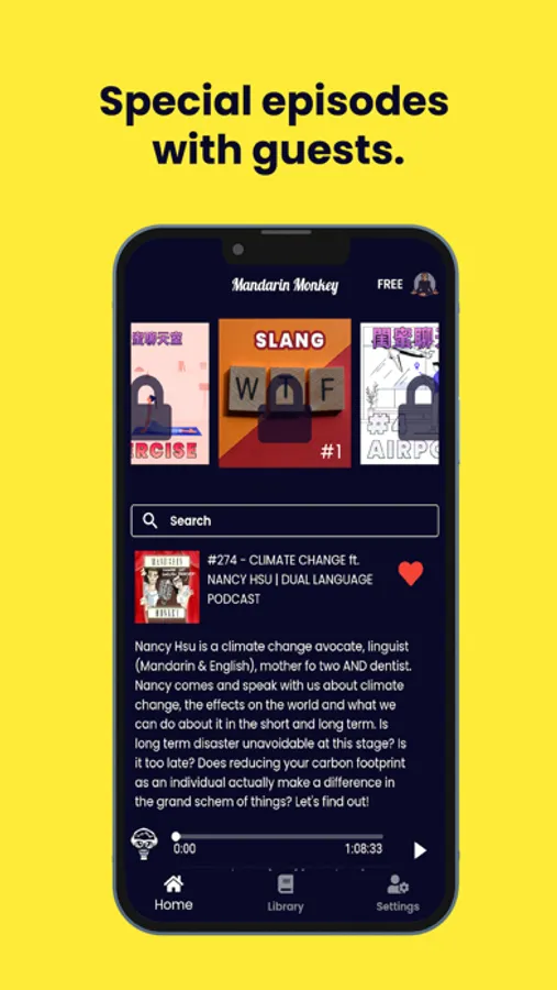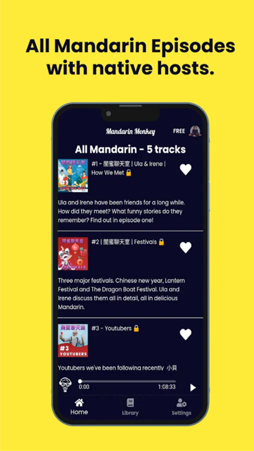 The Mandarin Monkey Podcast app is designed with the Mandarin listener in mind and aims to help you improve your Chinese listening skills. In addition to the awesome original content above you get the classic Mandarin Monkey podcast episodes streamed straight to the app as well.