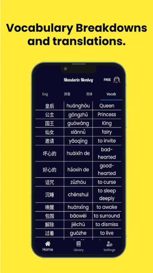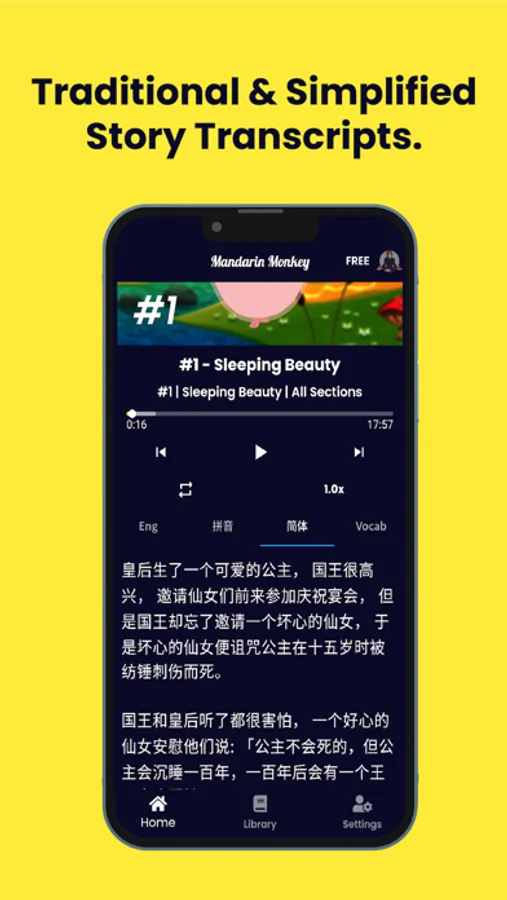 The app features an in app pull up screen which allows a listener to read along with the story being told, or check the vocabulary as it's being said. It also has the ability to show either simplified and traditional versions of the stories and hosts a vocabulary discussion going deeper into the stories meanings and uses of the words.