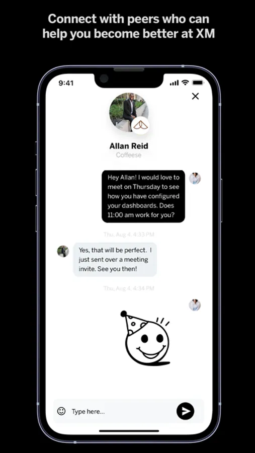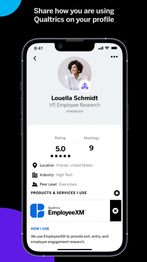 Meetings - Chat and arrange online meetings with peers you’ve connected with. Qualtrics does all the heavy lifting of sending meeting invites, reminders, and video conferencing. Just pick a date and time and get ready to share.