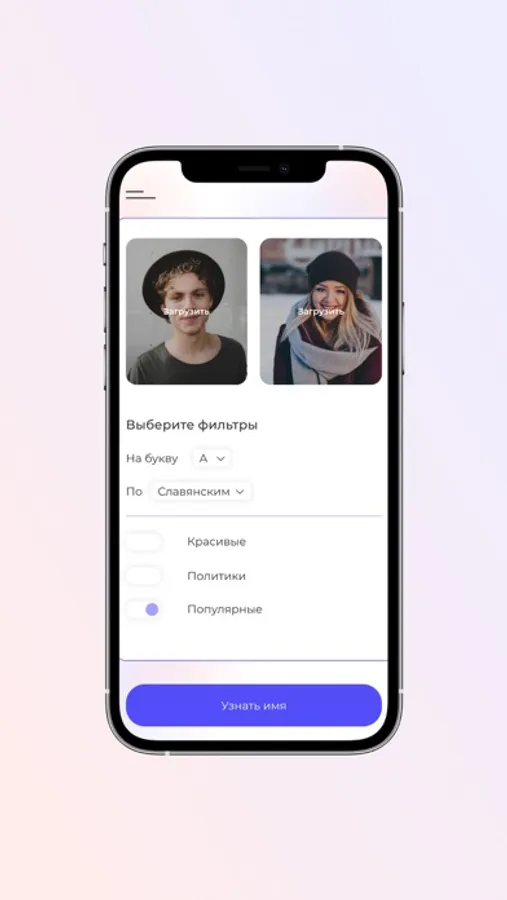 Просто загрузите фотографии родителей, укажите возраст, страну проживания и пол малыша. Нейросеть предложит список имен, которые идеально подойдут вашему ребенку.