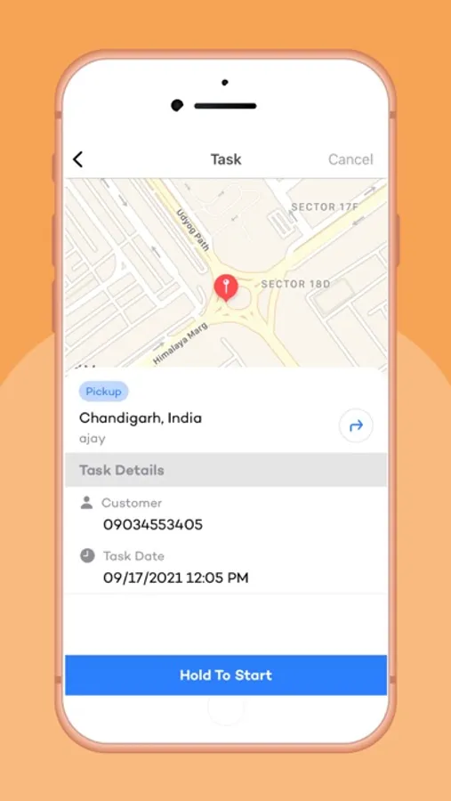 The order will show on the driver's app; here the driver will accept or reject the pick up of the order after this was accepted they would see as the information regarding of the customer's order (name, phone number, address) and delivery details (address, etc.).