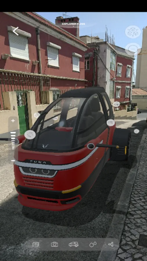 You can also use the “TUGA Augmented Reality Experience” module to place your preferable TUGA model wherever you want (in your garage, in the street, near your door, or even in your leaving room) and explore all his innovative abilities and differentiators. In the AR environment, change the model and select your favourite colour, scale, move or rotate it to place it in the best spot to take the perfect AR photo in a real scenario and send it to your friends. You can also visit his interiors or experience all its amazing features like expand the chassis, open the canopy, retract the rear-axel, and so many other unique features.