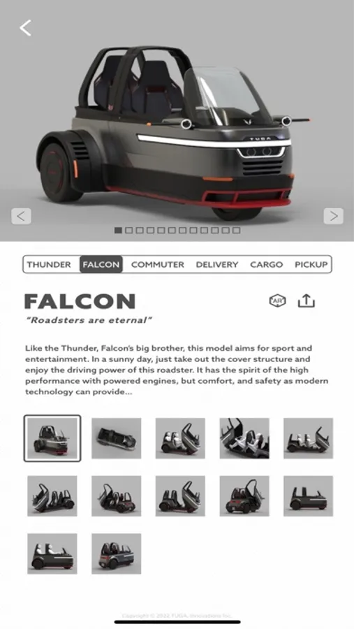 With an aerodynamic open cockpit or fully enclosed, the TUGA delivers form, function, and safety in all climates. With modular bodies, add-ons, plug-ins and regular updates, consumers can own a base model and continue to buildout their perfect TUGA.