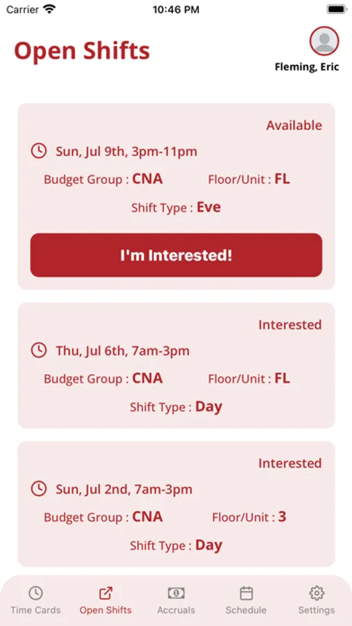 The current scope handles collaborative workflow of the offering and acceptance of open shifts at a facility.