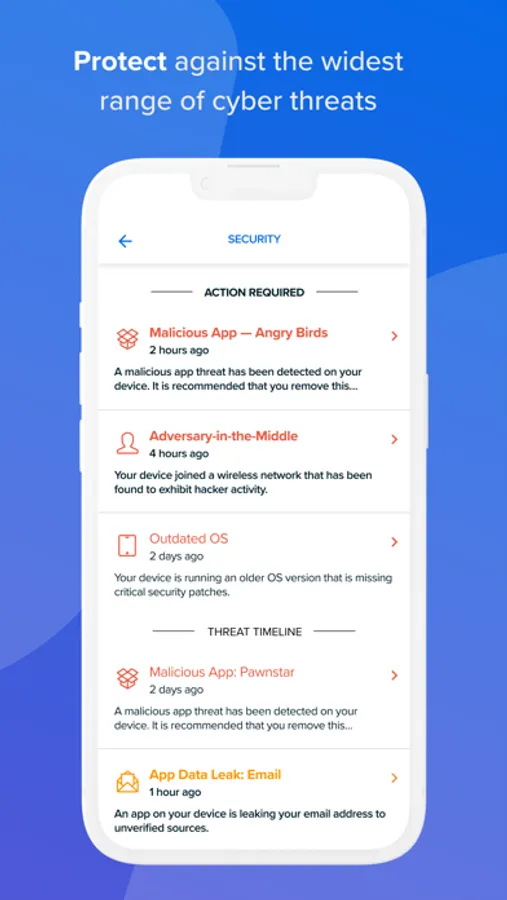 • Protects you from mobile malware that can compromise your device or theft of your data.