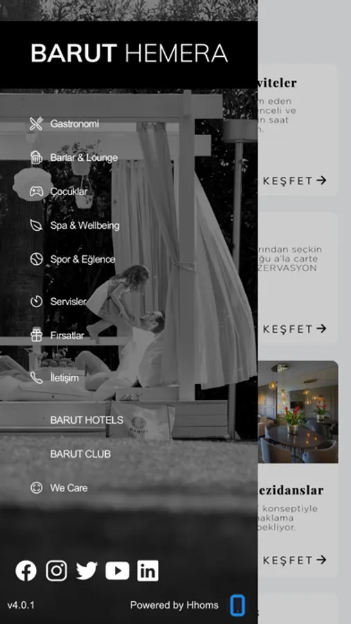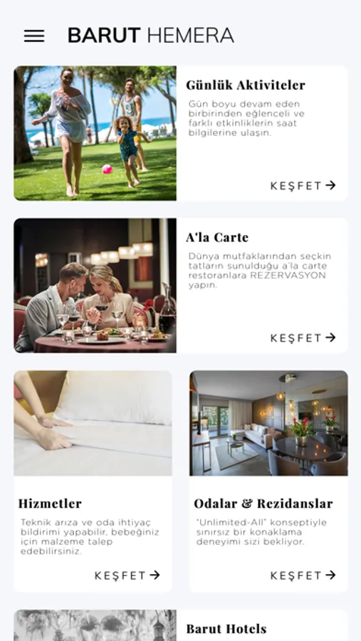 Hemera App mobil uygulamamız üzerinden bir çok hizmete kolayca erişebilir, konaklamanızın daha eğlenceli ve konforlu geçmesini sağlayabilirsiniz. Günlük aktivitelerden, otel restoranlarının menülerine kadar bir çok bilgiye kolaylıkla ulaşabilirsiniz.