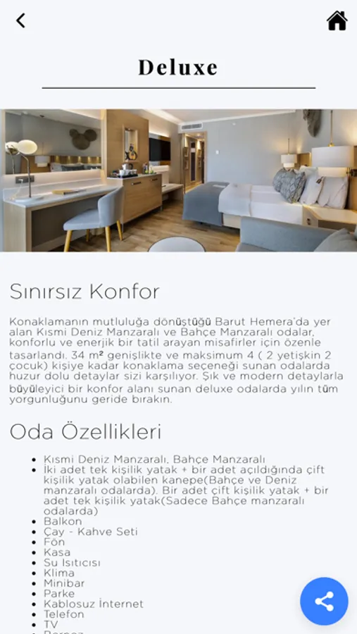 Uygulama, henüz otele gelmeden kişisel bilgilerin Pre Check-in bölümüne girilerek giriş işlemlerinin hızlandırılmasını sağlıyor. Odanız hakkında detaylı bilgi sahibi olabilirsiniz ve otelde bulunduğunuz süre içerisinde a la carte restoran, spa rezervasyonlarını yapabilirsiniz. Tüm istek ve ihtiyaçlarınızı anında bizlere iletebilir, ayrıca aldığınız tüm hizmetlerle ilgili yorumlarınızı yazarak ve anket olarak uygulama üzerinden iletebilirsiniz.