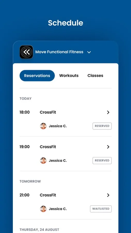 For members of Move Functional Fitness to reserve their place in a class, sign up for gym events, and general account management like updating headshots and credit card on file.